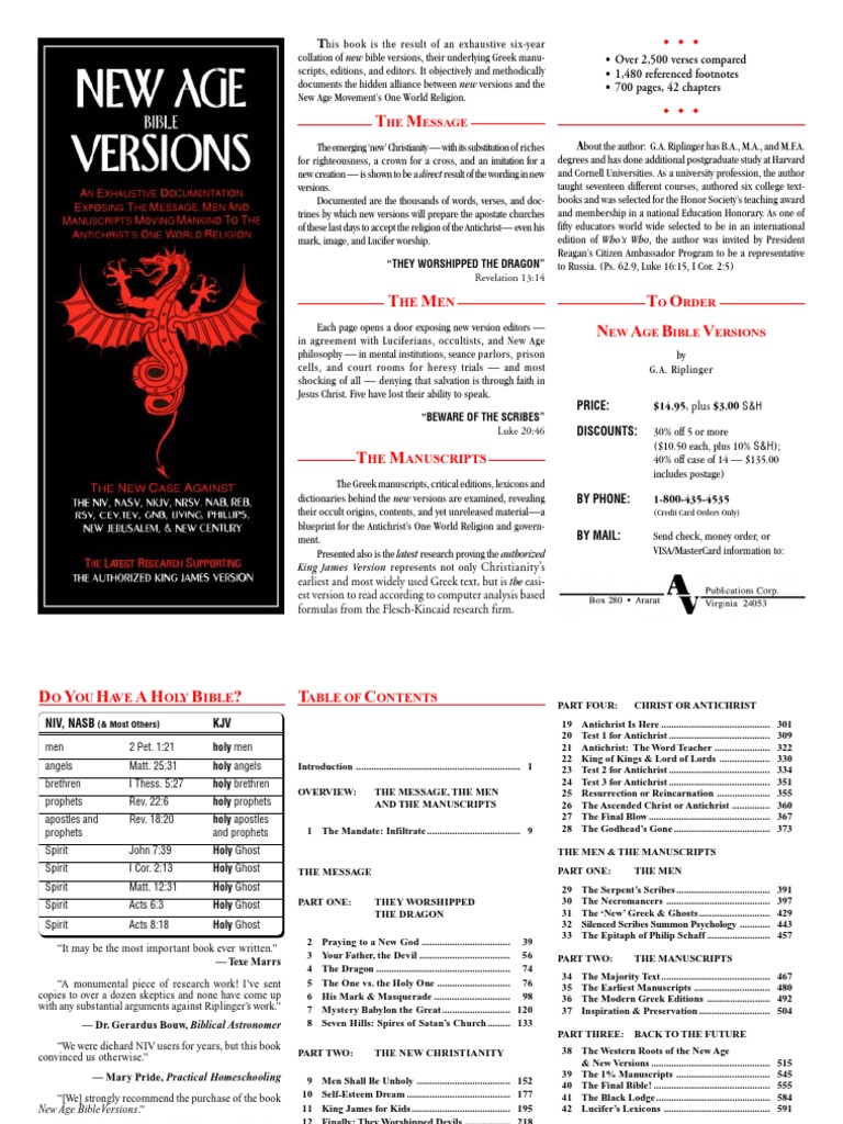 New Age Bible Versions Flyer Tract Bible Baptist Bookstore , The update represents more than four years of intense work of.
